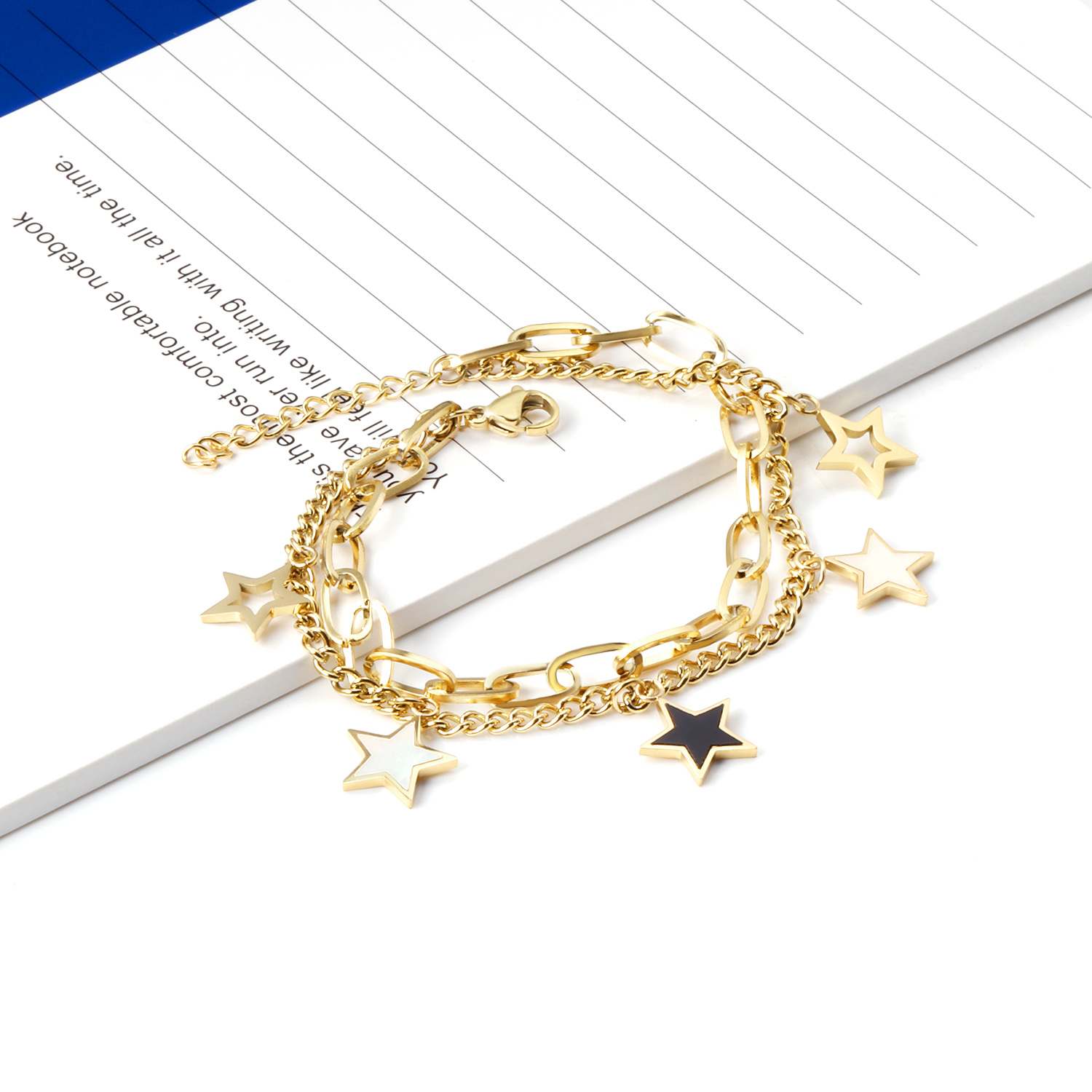 Très tendance et élégant Bracelet chaine à breloque doré et orné de motifs en forme d’étoile