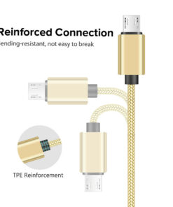 Lot de 2 câbles chargeur USB Or/gold en nylon tressé très résistant d’une longueur de 2 mètres pour votre téléphone mobile équipé d’un connecteur de type Micro USB. Ce câble certifié CE assure une charge complète rapidement et une synchronisation en votre mobile smartphone et vos différents appareils. Fabriqué en matériaux résistant vous l’utilisez dans la durée.