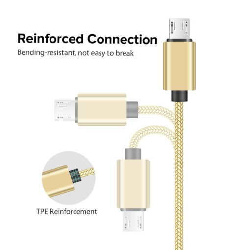 Acheter Lot de 2: câble chargeur/synchronisation micro USB de 2 mètres en nylon résistant (Or)