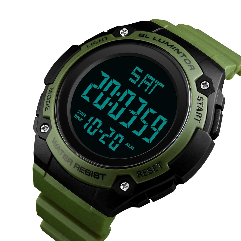 Montre vert armé à quartz digital sport et loisirs, antichocs a affichage digital.